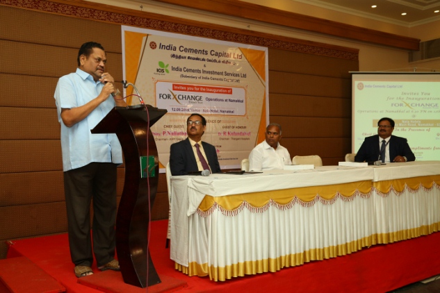 INDIA CEMENTS CAPITAL LTD has started FOREX OPERATIONS at NAMAKKAL on 12th September 2019. Mr. K. SURESH PRESIDENT & CEO, ICCL Welcomed the Gathering. The Cheif Guest MR. P. NALLATHAMBI CHAIRMAN - KKP GROUP OF MILLS, Inaugurated the FOREX OPERATIONS. The Guest of Honour DR. KULANDAIVEL PRESIDENT - THANGAM GROUPS, has Launched The FOREX MOBILE APP during the Event. MR. S. MAGESH GM FOREX ICCL delivered the Vote of Thanks.